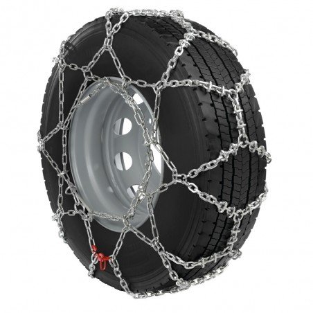 Coppia catene da neve per veicoli industriali Battistrada a rombo in acciaio speciale zincato con aggiunta di maglie di rinforzo per aumentare il la trazione e diminuire lusura. Maglie con sezione a D e spessore filo differenziato in base alla misura (da 5,5 mm a 7 mm). Sistema di aggancio con catena laterale interna ed esterna per la massima affidabilità in tutte le condizioni. Tensionamento rapido e costante con sistema a leva Certificate ai sensi delle norme Ö-Norm V5119