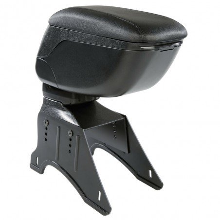 Fornito con base di appoggio universale Compatibile con gli attacchi specifici (da ordinarsi a parte) per una perfetta installazione su misura a seconda del veicolo Morbido piano di appoggio scorrevole e ribaltabile Rivestimento in Skeentex con cuciture a 3 fili Ampio vano portaoggetti interno