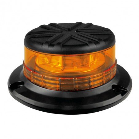 8 Led. Lente in policarbonato. Luce a 3 funzioni: rotante, strobo e lampeggiante. Base piana, fissaggio a 3 viti + bullone centrale. Silenziosa, senza nessuna parte in movimento. Impermeabile IP66. Per veicoli industriali, mezzi agricoli, di emergenza, di soccorso.