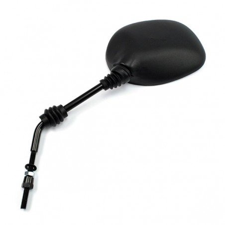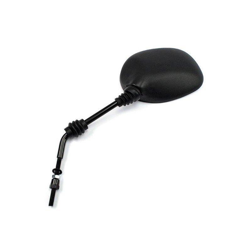 Lato: sx - Passo: Ø 8x1.25 dx - Colore: nero - Vetro ovale 140x100 mm. (max). - asta Ø 10 mm. - lunghezza perno 74 mm. - filetto 25 mm.